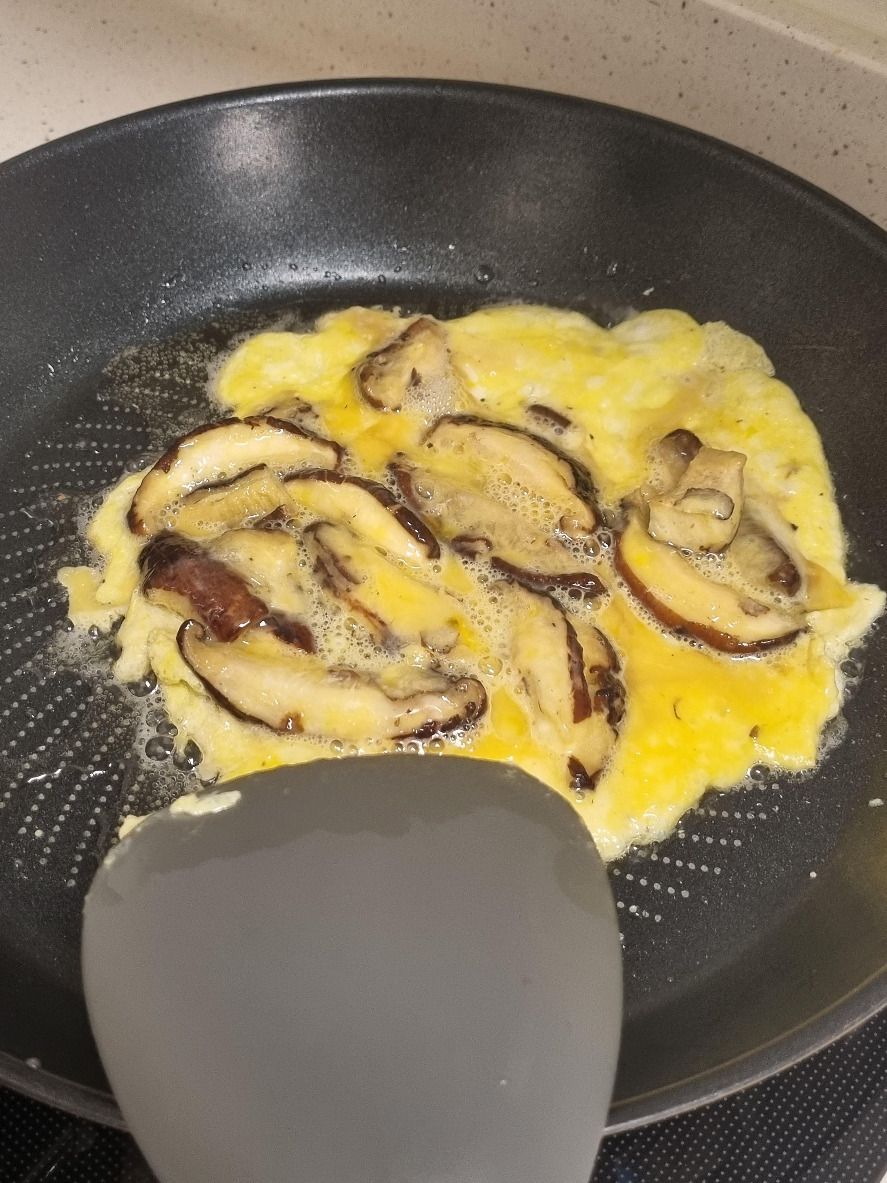 계란을 익혀준다. 이 때 표고버섯이 얼었었기 때문에 충~~~분히 익혀줬다. 덜 익으면 어떻게 하지,,,했는데 어찌어찌 익긴 익음! 다음에는 더 잘게 잘라서 해야 하나,,ㅎㅎ